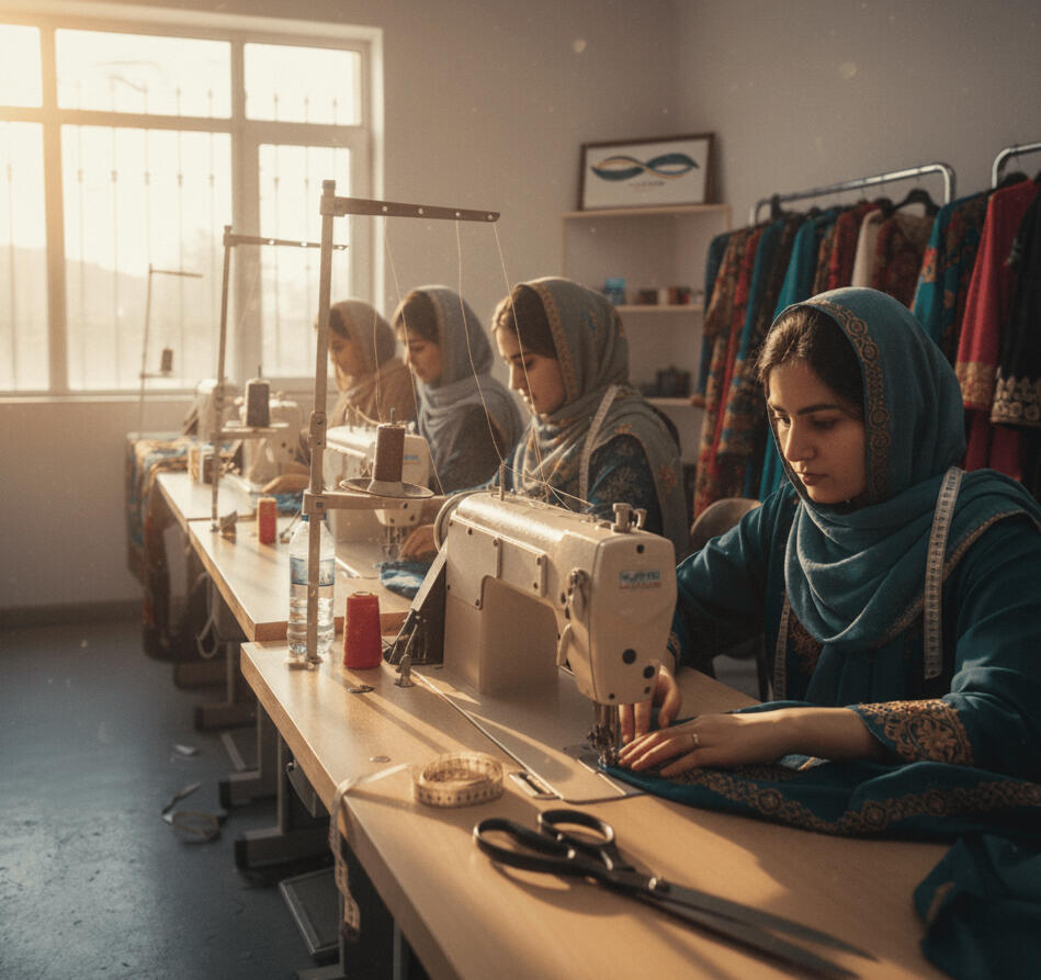 Formation intensive de 4 mois en couture et broderie artisanale. Incluant outils, machines et apprentissage de compétences entrepreneuriales.